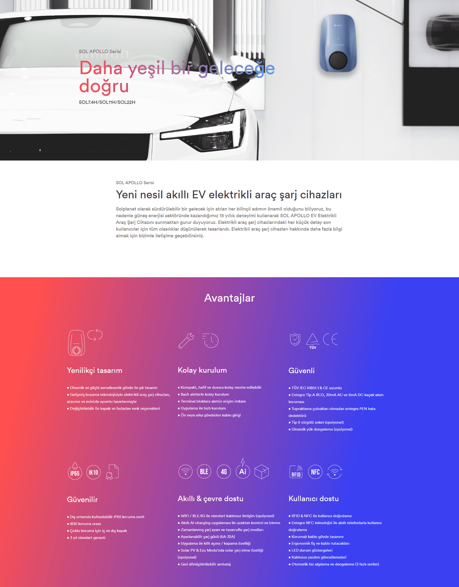 Solplanet Elektrikli Araç Şarj Cihazını sunmaktan gurur duyuyoruz. Elektrikli araç şarj cihazlarındaki her küçük detay son kullanıcılar için tüm olasılıklar düşünülerek tasarlandı. Elektrikli araç şarj cihazları hakkında daha fazla bilgi almak için bizimle iletişime geçebilirsiniz.